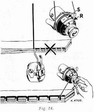 To decrease tension, turn screw gradually over to the left (Fig. 27).