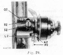 If thread take-up spring P2 requires to be replaced, loosen screw Q2, Fig. 29 and remove stud J2 and spring P2.