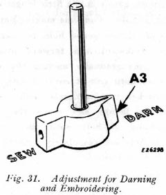 Turn pointer of feed throw-out A3, clockwise to "darn" position as shown in Fig. 31.