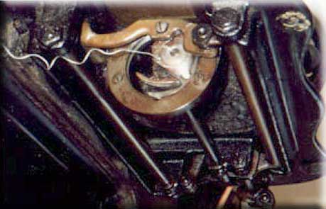 This interesting machine was the forerunner of Singer's Model 15, which was probably the most successful machine of all time. The "Improved Family" was produced between 1879 and the early 1890's. The oscillating shuttle mechanism (see Shuttle Detail below) is somewhat unusual and complicated in operation and uses an unusually small bobbin. The backplate (see Backplate Detail below) is also unusual, stretching the whole length of the machine head. The serial number on this model is located on the bed behind the pillar.