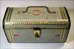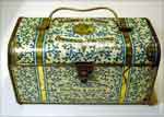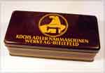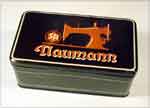 German sewing machine attachment tins were often very striking and decorative, sometimes even including mirrors on the inside!