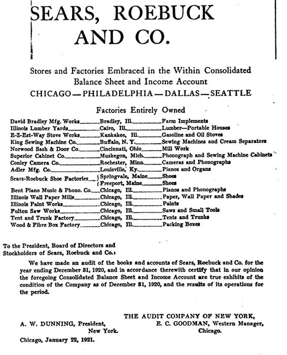 Extracts from this consolidated annual statement for Sears, Roebuck & Co. show that the King Sewing Machine Company was owned by Sears. In addition, Sears owned Superior Cabinet Company, who manufactured sewing machine cabinets.