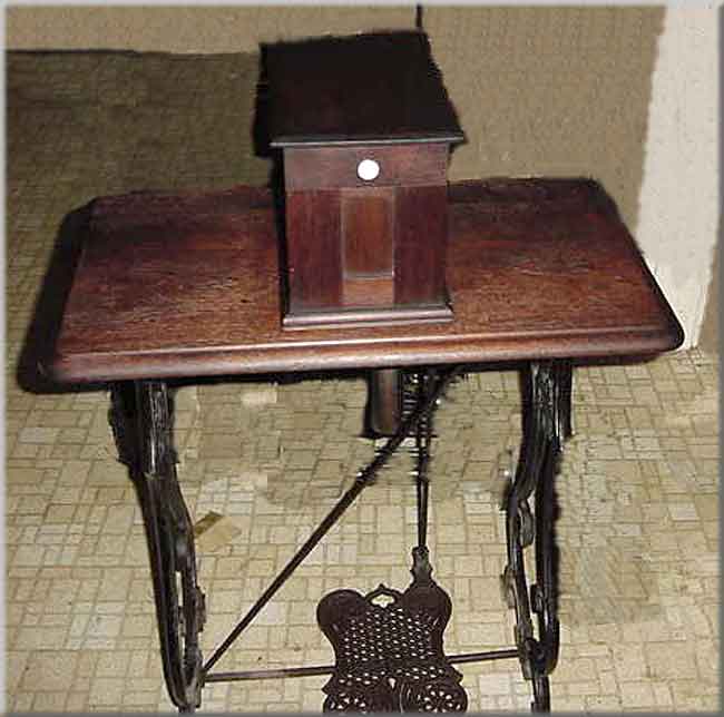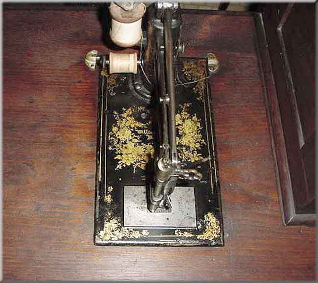 This is a two-thread chain stitch, friction-driven machine. One of the pictures shows part of the friction wheel.