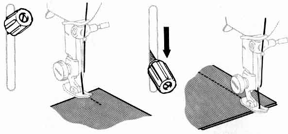 1. Adjust Stitch Length Regulator for desired stitch length (usually about 10 or 12).