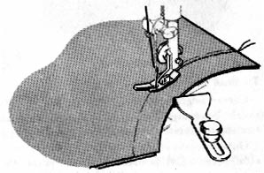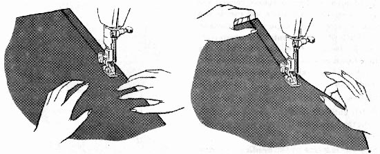 Outside curves tend to lead away from centre slot of scroll and should be guided so that a full seam width is taken at needle point. Do not attempt to pull or straighten fabric into full length of scroll.