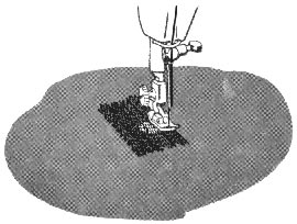 5. Lower presser foot and start stitching, alternately letting fabric feed normally away from you and then gently pulling fabric toward you. Continue this forward and backward motion until area to be darned is filled with parallel lines of stitching.