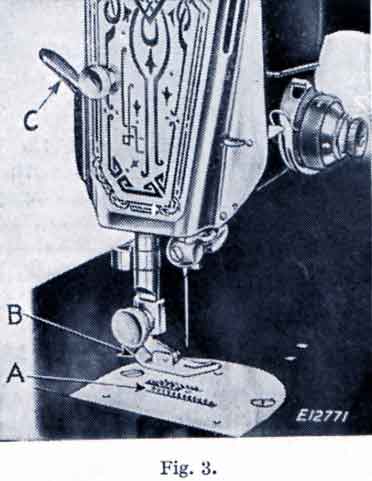 Turn the Singerlight "on" or "off" by means of the switch A, Fig. 2.