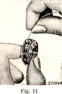 Then pull the thread into the slot as shown in Fig.10, and back under the tension spring into the slot at the end of the tension spring as shown in Fig. 11.