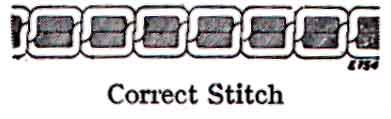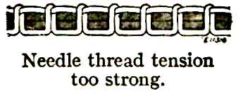 If either tension is stronger than the other, imperfect stitching will be the result, thus:--