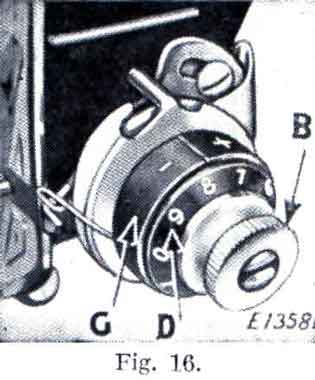 Occasionally apply a drop of oil at the hook bearing at B in Fig. 12.