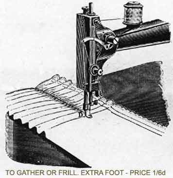 Take off the ordinary sewing foot and put on the one with the surface reduced at the bottom. Place the material right side upwards and begin to sew as for ordinary sewing. If more fulness is required it can be obtained by making a large stitch and tightening the tension.