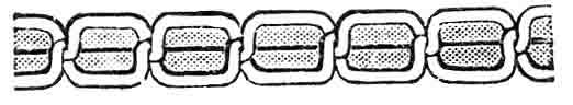 When upper tension is too loose, the lower thread will lay flat on under side of goods and stitch appear thus: