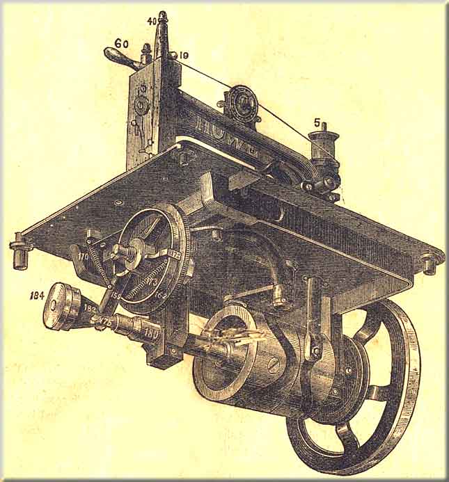 Nearly all the parts of the Howe Hand Machine are similar to those of the A and B machines. Some are smaller, but the same in principle and action; therefore in giving instructions we only touch on those points which are on this machine and not on the others.