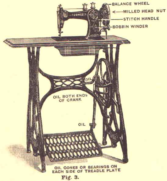 Make yourself thoroughly familiar with the treadle motion before attempting to use the machine, and take particular notice that the Balance Wheel must turn towards you.