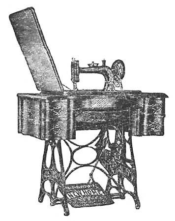 Familiarity with the motion of the treadle is first to be learned, and practice is necessary in order to give a steady and uniform revolution to the driving wheel. The presser-foot, which holds the work in place on the feed, should be raised to prevent the feed from injury by contact with it. Place the feet on the treadle with instep directly over the rod upon which the treadle rests. Start the machine by placing the right hand upon the top of balance wheel and revolving it towards you, taking care to give it impetus enough; keep up a regular movement by pressing alternately with the heel and ball of the foot with equal effect. This should be practiced until a uniform motion of the wheel is obtained. Do not attempt to sew until you are familiar with the treadle movement.