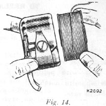 NOTE. Before replacing the cover or the machine in its case, the lever should be disengaged and the handle placed in the position shown in Fig. 6.