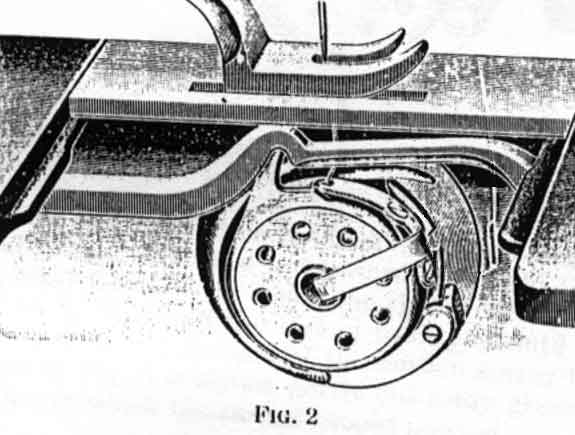 TO THROW ON THE BELT. Place the belt in the groove of the balance wheel and let it hang loosely; place your feet on the treadle and start the band wheel toward you, running it slowly so that the lug on the band wheel will catch the belt and switch it into the groove without further effort on your part.