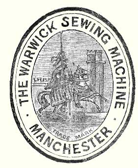The above Cut represents the "Warwick" Trade Mark Plate, which is affixed to the arm of every Machine as an additional protection to the public against the deceptions of parties advertising for sale worthless counterfeit Machines as the "Warwick".