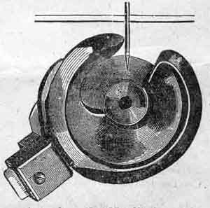 Set the Needle with the flat side to the left. The eye of the needle should be level with the top of the back part of the hook, when the point of the hook has just reached the needle, as in the cut. See that the needle runs perfectly true through the center of the needle-hole in the plate; if it does not, bend it until it does.