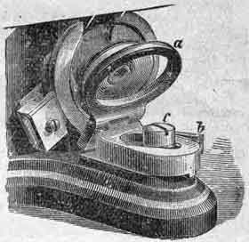Press the Lever (b) and turn back the drop (a). Place the bobbin upon the drop