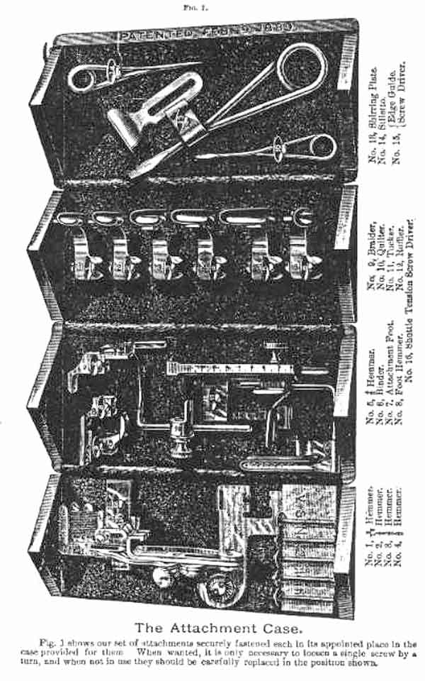 Puzzle box styled "1888 (Foot-Bar) Set of Attachments"