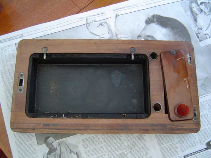 Wow! What a little beauty! It’s pretty obvious that the case has fulfilled its purpose of protecting the contents very well indeed. That’s a very nice, clean example of a late ‘30s Vesta VS111, so it’s well worth putting some effort into making the case look like new again. ……. Right? …… Wrong!