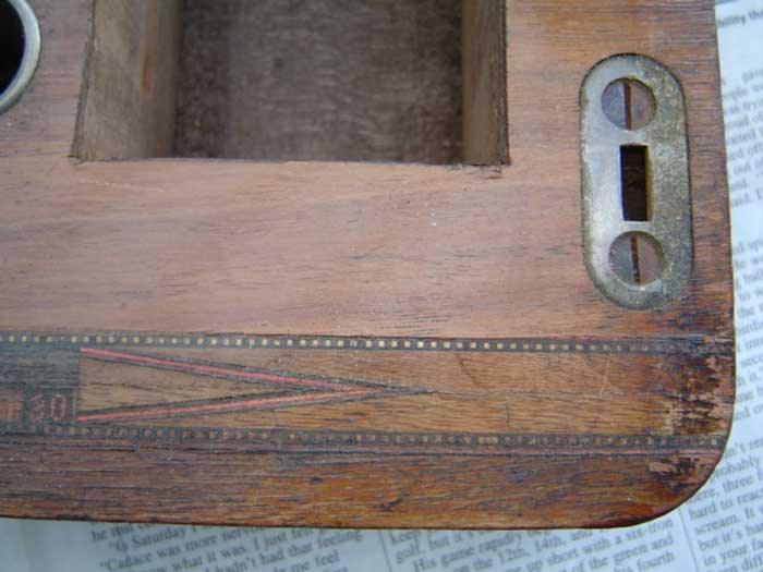 Here it is, straight from the antique shop. Not a pretty sight! That case is showing several of the problems that the restorer has to be able to overcome – scratches, dirt etc. But hang on! Scratches and dirt aren’t a big problem! We can get rid of those by cleaning – we don’t want to be doing a full-blown restoration for the sake of a bit of dirt and a few scratches.
