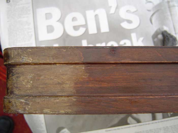 So where are we? We’ve decided that there’s no alternative to stripping and replacing the finish on the cover, but that the original finish on the base is salvageable. This scenario, for some reason, is surprisingly common, perhaps because the cover tends to get more exposure to sunlight and the elements than the base.
