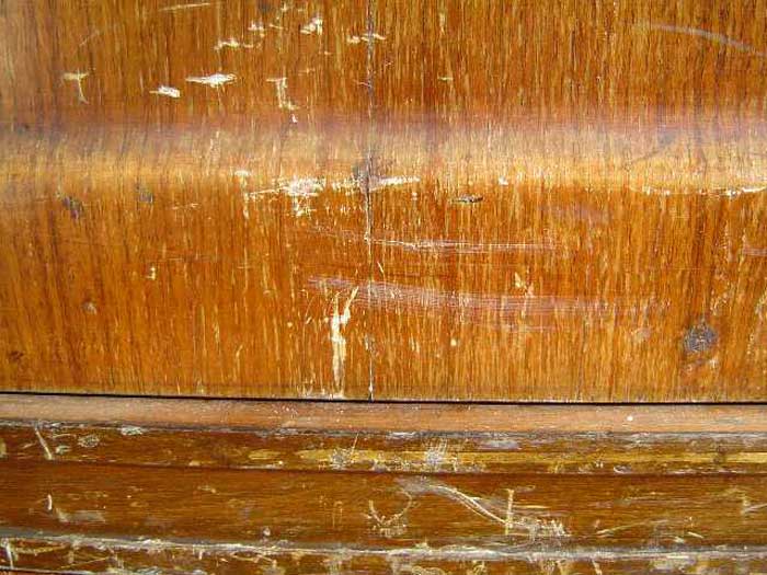Those scratches look pretty bad. But don’t be fooled – scratches will look worse than they actually are and are usually quite easy to deal with without stripping the original finish. If those scratches were the only damage, I wouldn’t consider stripping the shellac off, but as it’s perished, I’m afraid we’ve no choice.