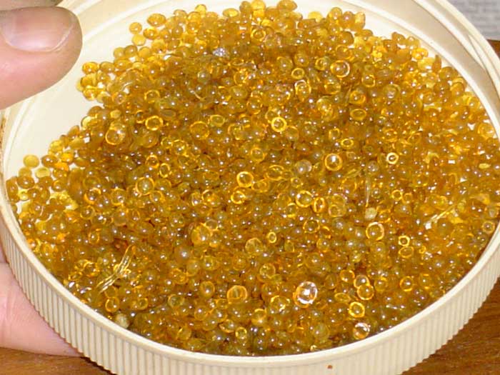 Hundreds of little pearls. This is one of the oldest glues known – it’s been in use for hundreds of years and is still unsurpassed for many tasks, in particular veneering, where there’s no realistic alternative if you’re going to do a good job. It is not, however, as convenient to use as modern glues, as it requires some preparation and it has to be applied hot.