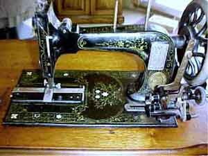 Decal style -- Roses c.1889 Was this machine designated model B? Early high arm Transverse Shuttle machine, this with the rose decals used on the low arm versions |
