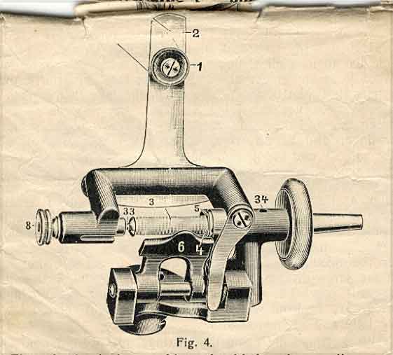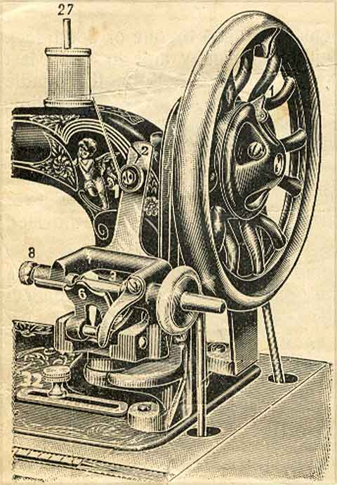 The wheel of the machine should be always disconnected before starting to wind, which is done by pushing the catch on the boss of the wheel from you, which not only makes it much easier to fill the bobbin but saves a lot in the wear of the machine.